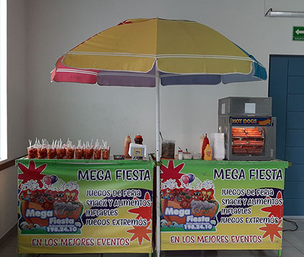 Aquí encontrarás todo el alimento que buscas para tu FIESTA, Carrito de Hamburguesas y Hot Dog, Puestos tipo kermés con golosinas, etc.