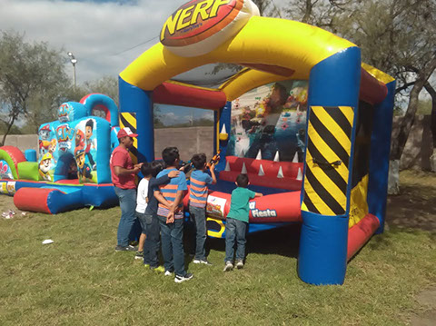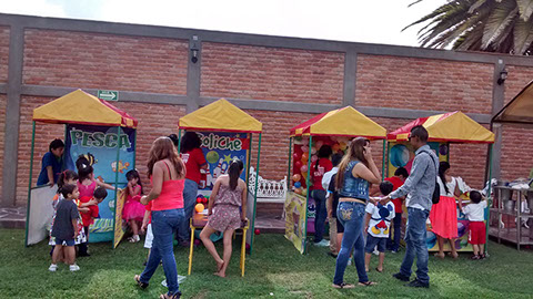 Además encontrarás diversión como: Juegos tipo feria como: canicas, globos, pesca, etc... Pinta Caritas, Salón de Belleza, Modulo de Caballetes, Bisutería, Carpintería, Cerámica, Mini Chef, etc. Así como Inflables, Fiesta de Espuma, Inflables Acuáticos, Cancha de Futbol, Ring de Box, Sumo, y una amplia variedad de divertidos juegos extremos como Euro Bongie, Eliminador, Gladiador, Juegos Mecánicos, Roller Ball, Martillo de Fuerza, Escalera Loca, Carrera de Caballitos, Demoledor, Futbolito, Pelotas Choconas, Eliminador, Angry Bird, Ludoteca, Alberca con Lanchitas, Alberca con Esferas, Toro Mecánico, Trampolín, Cabina de la Fortuna, Cabina de Fotos, Show de Zanqueros, Payasita, Personajes y Botargas. También contamos con el servicio de mobiliario, toldos y todo lo relacionado para que tu evento sea un ÉXITO !!!